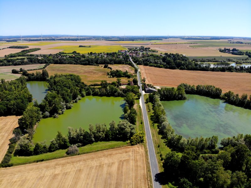 | Fischteiche bei Sainte-Thorette. Frankreich, Département Cher 11.07.2022; Flug Nr. 764 |