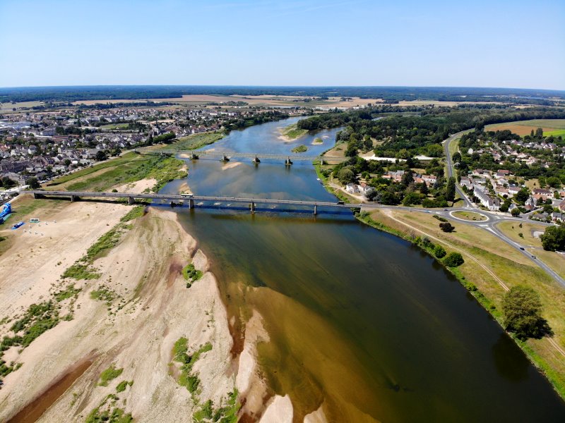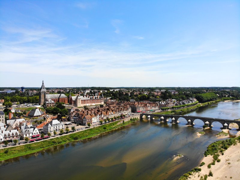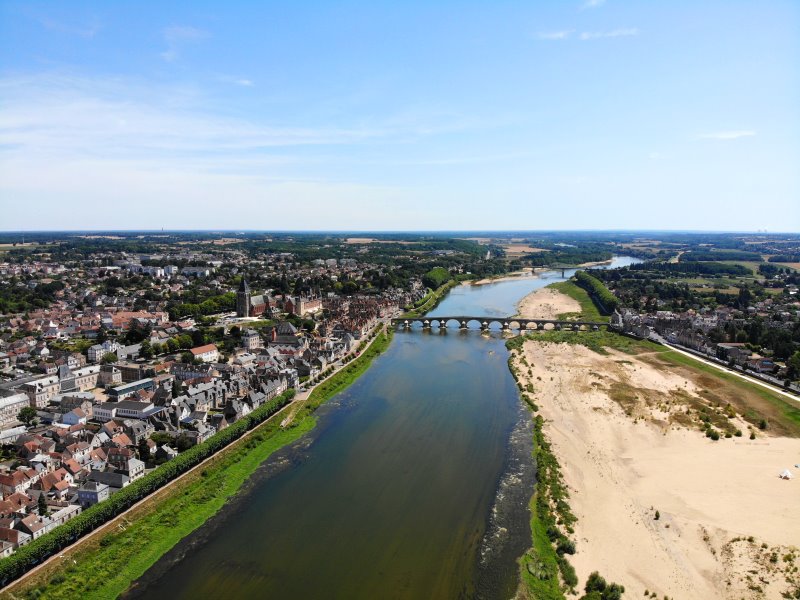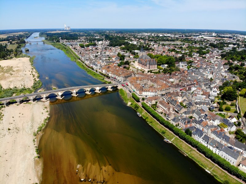 | Die Loire in Gien. Frankreich, Département Loiret 17.07.2022; Flug Nr. 770 |