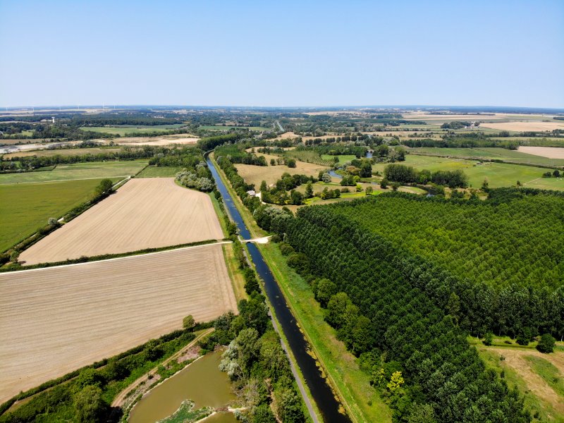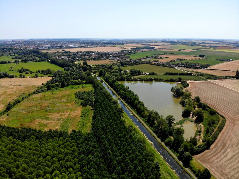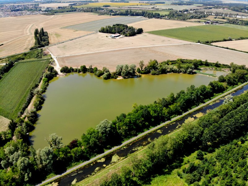 | Der Canal de Berry und ein See bei Pierrelay. Frankreich, Département Cher 18.07.2022; Flug Nr. 773 |