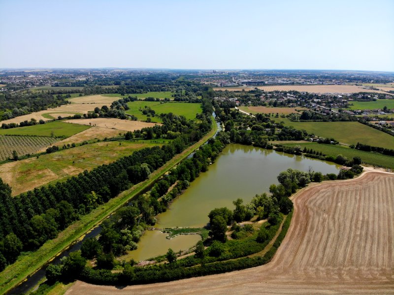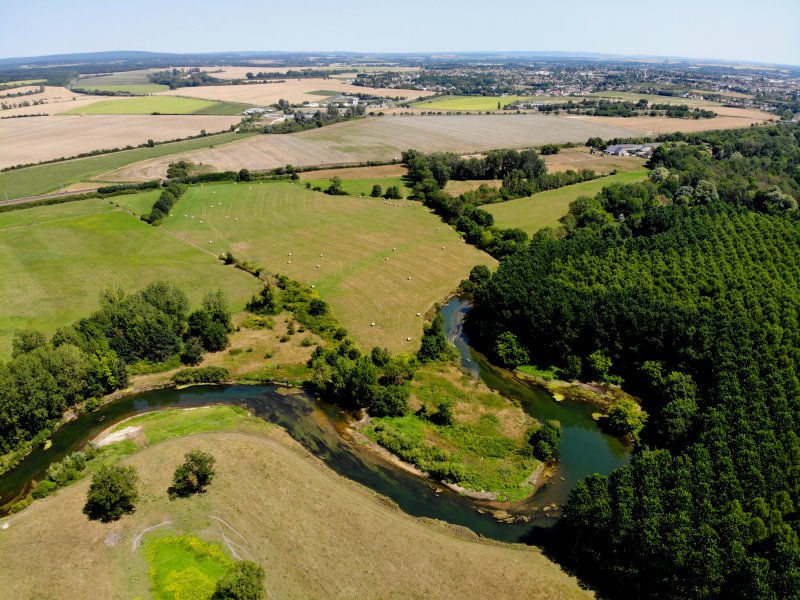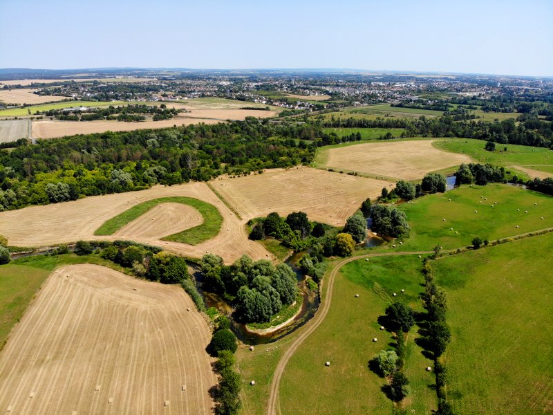 | Auch bei einem Testflug gibt es etwas zu entdecken! Eine vor Jahrhunderten abgeworfenen Flussschleife der Yevre kann bis heute nicht landwirtschftlich genutzt werden. Frankreich, Département Cher 18.07.2022; Flug Nr. 773 |