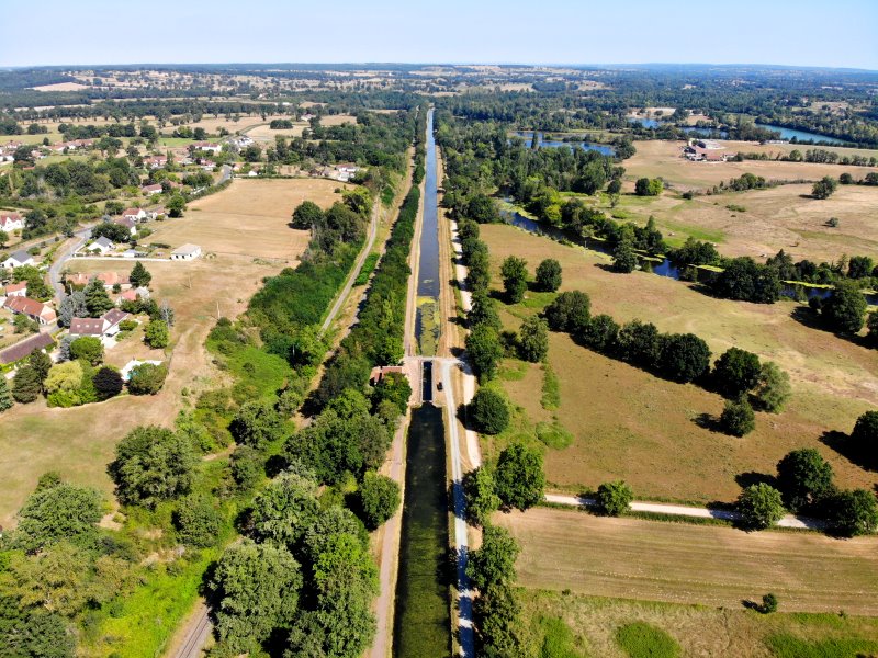 | Der Canal de Berry und der Cher bei Rouéron. Frankreich, Département Allier 07.08.2022; Flug Nr. 779 |