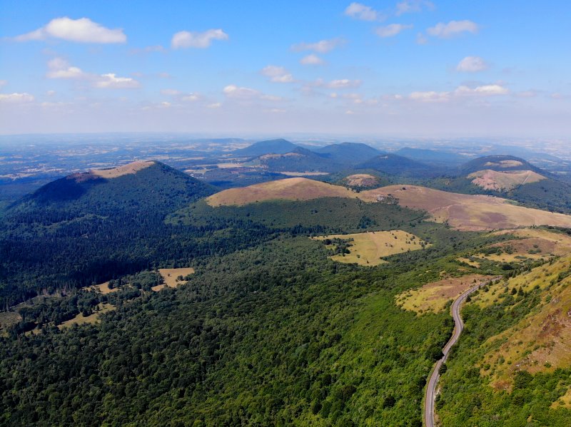 | Blick über die Vulkankette Chaîne des Puys. Frankreich, Département Puy-de-Dôme 07.08.2022; Flug Nr. 780 |