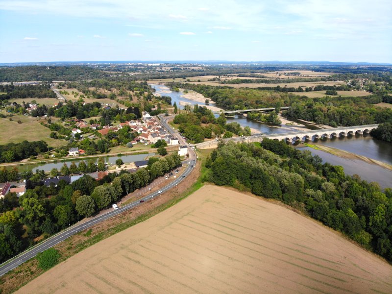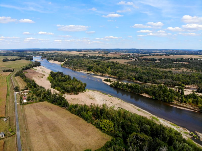 | Die Loire bei Marseilles-lès-Aubigny. Frankreich, Département Cher 27.08.2022; Flug Nr. 785 |