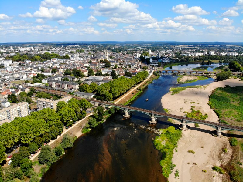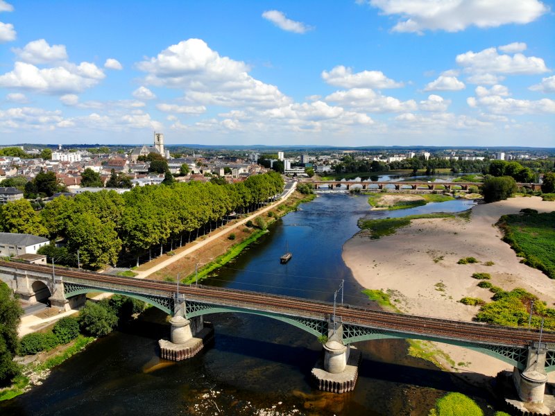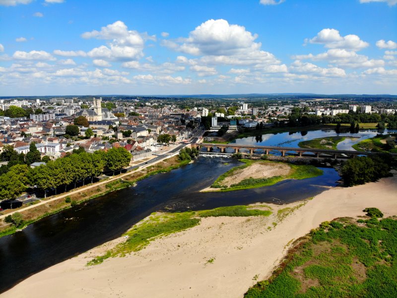 | Blick auf die Loire in Nevers. Frankreich, Département Nèvre 28.08.2022; Flug Nr. 788 |
