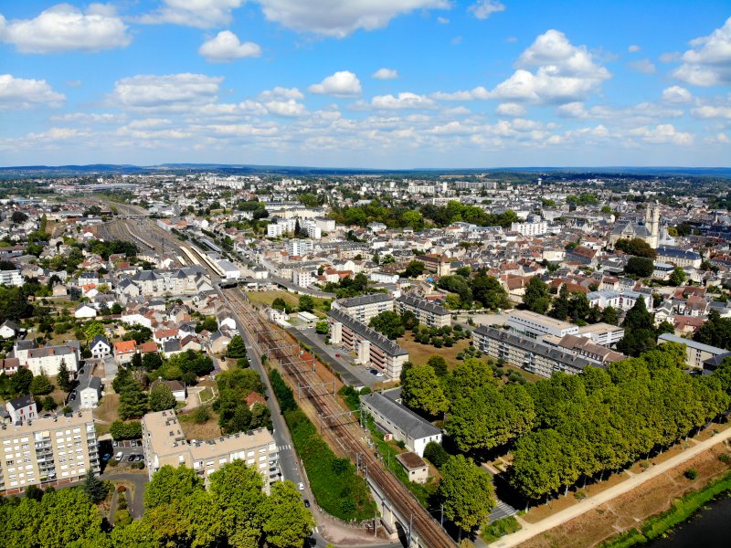 | Blick auf Nevers mit dem Bahnhof. Frankreich, Département Nèvre 28.08.2022; Flug Nr. 788 |