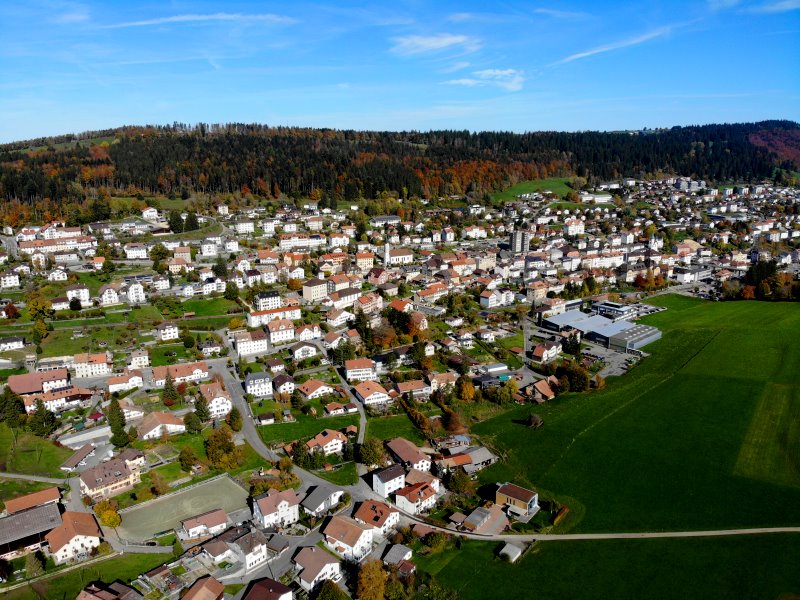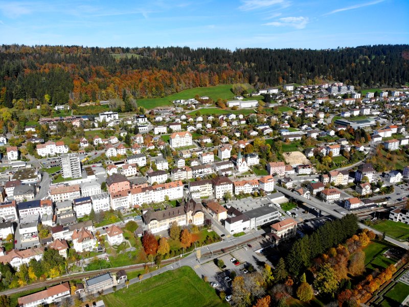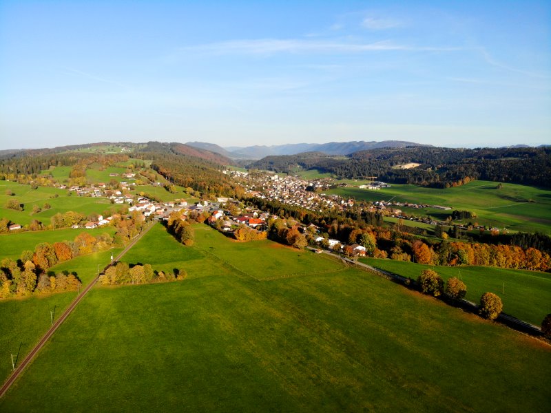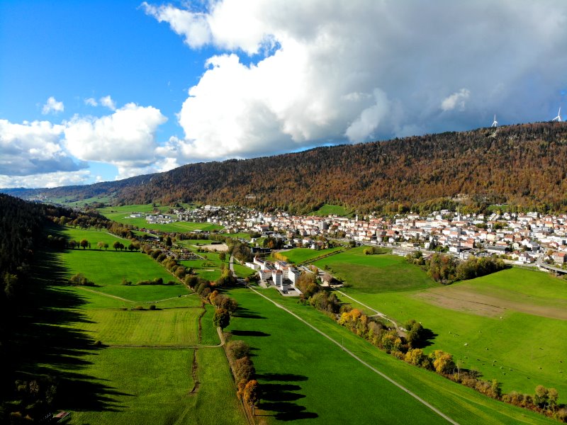 | Blick auf Tramelan. Schweiz, Kanton Bern 17.10.2022; Flug Nr. 815 |