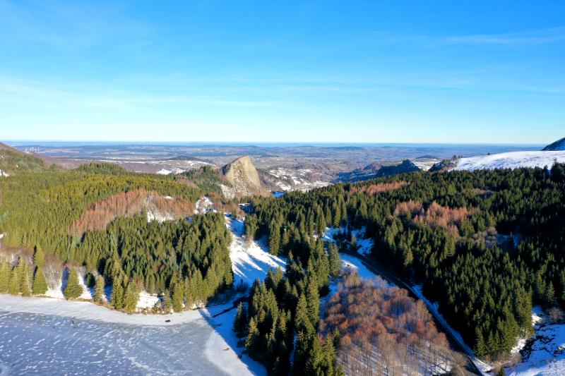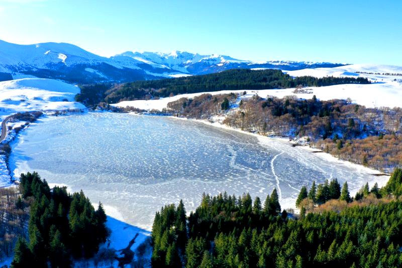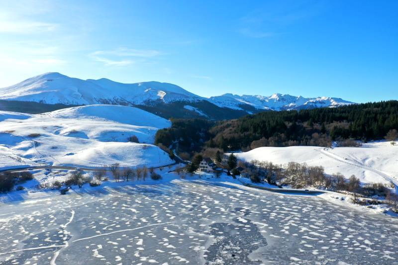 | Flug über den Lac du Guéry. Frankreich, Département Puy-de-Dôme 12.02.2023; Flug Nr. mp006 |