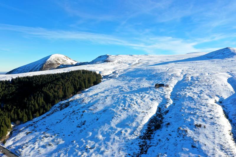 | Der 1.465 m hohe Puy de Dôme. Frankreich, Département Puy-de-Dôme 11.02.2023; Flug Nr. mp004 |