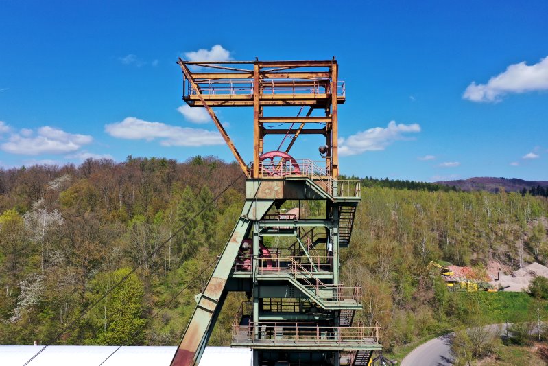 | Blick in den Malakoff-Turm vom Walter-Schneider-Schacht in Helbra. Deutschland, Sachsen-Anhalt 30.04.2023; Flug Nr. mp026 |