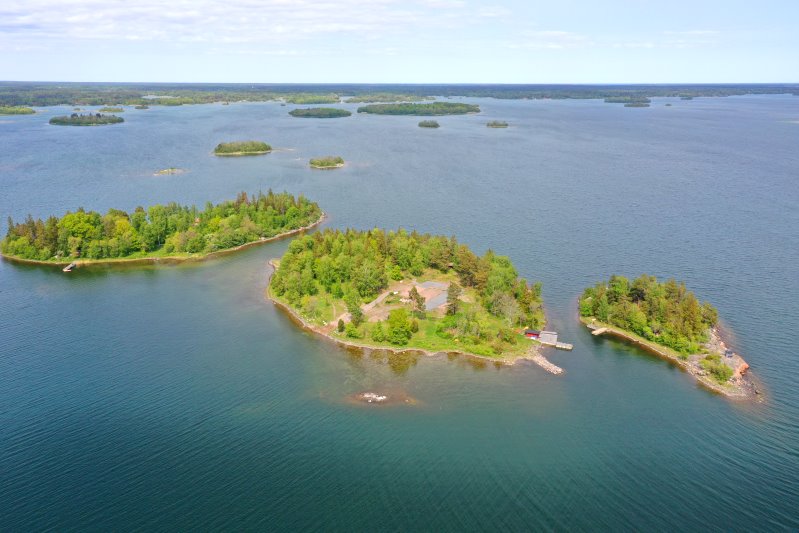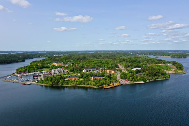 | Flug im Stockholmer Schärengarten - Blick auf Oskar-Fredriksborg. Schweden, Stockholms län 31.05.2023; Flug Nr. mp069 |