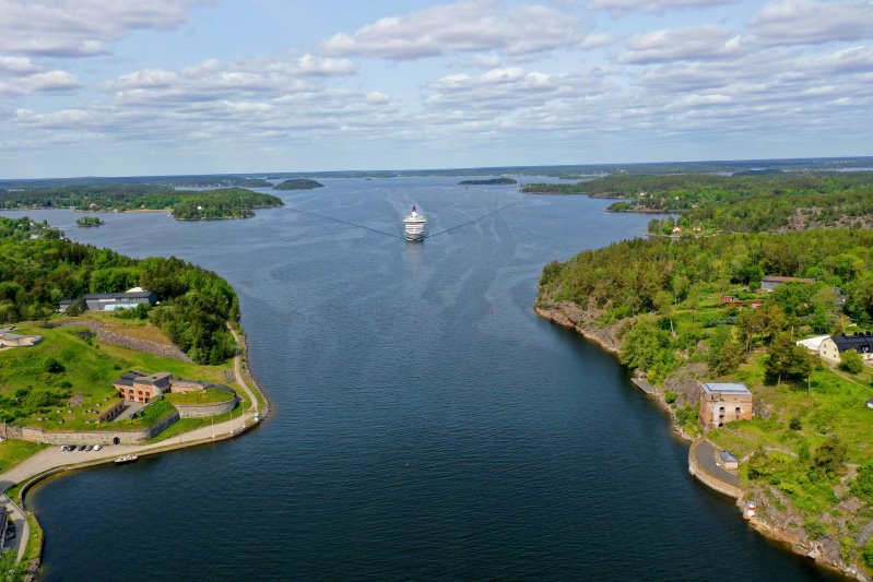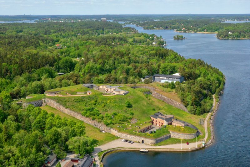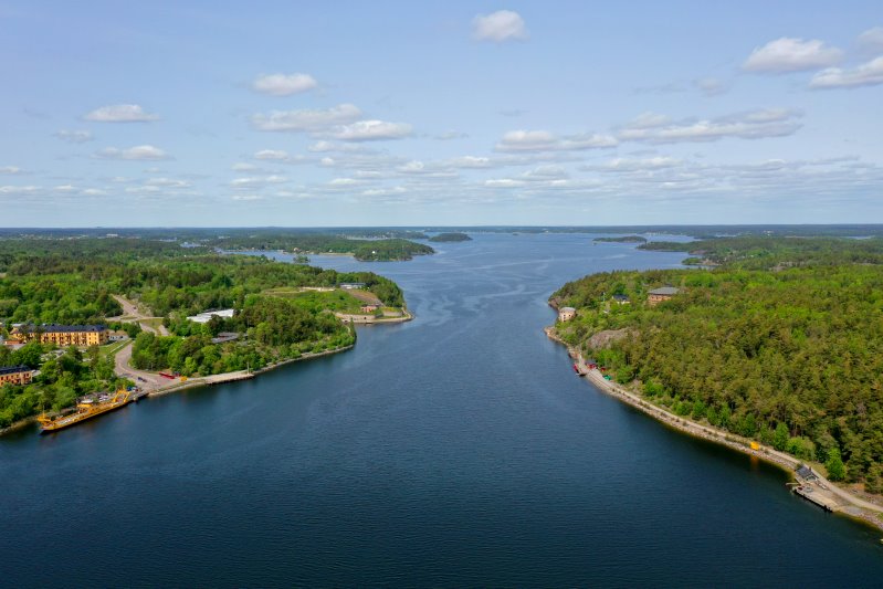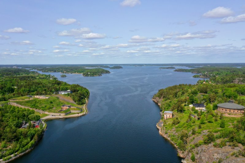 | Der Oxdjupet mit den Festungen Oskar-Fredriksborg und Fredriksborg. Schweden, Stockholms län 31.05.2023; Flug Nr. mp069 |