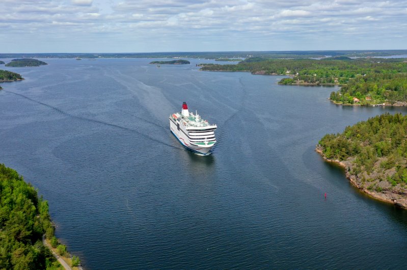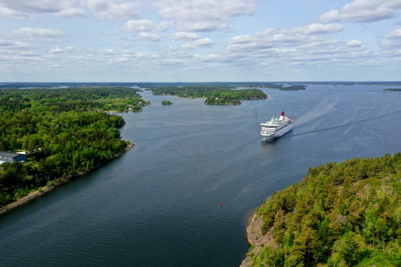 | Auf dem Weg von Helsinki nach Stockholm nähert sich die M/S "Viking Cindirella" dem Oxjuped. Schweden, Stockholms län 31.05.2023; Flug Nr. mp070 |