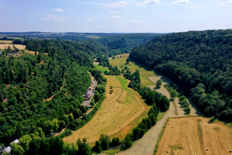 | Blick in das Eischtal bei Septofaines. Luxemburg, Kanton Mersch 17.06.2023; Flug Nr. mp077 |
