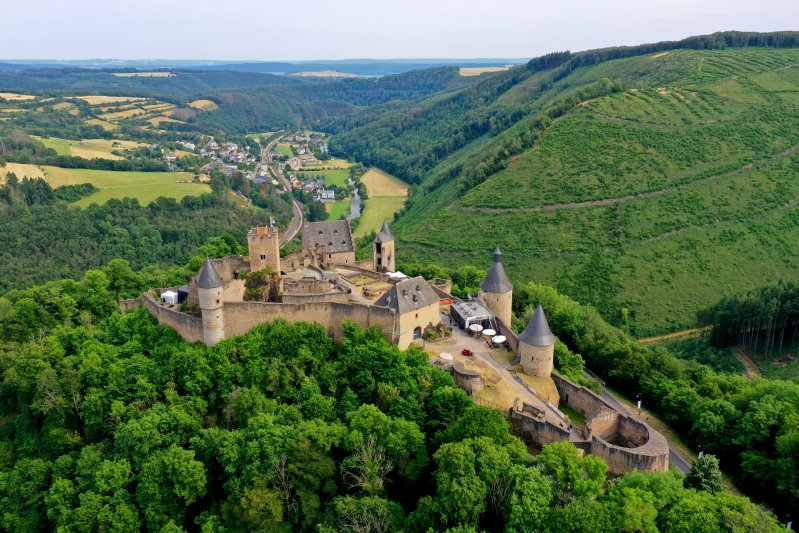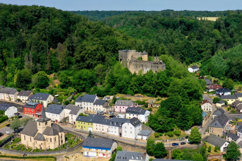 | Die Burg Burscheid. Luxemburg, Kanton Diekirch 17.06.2023; Flug Nr. mp079 |