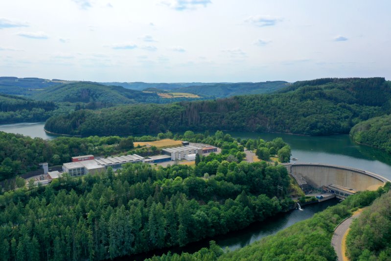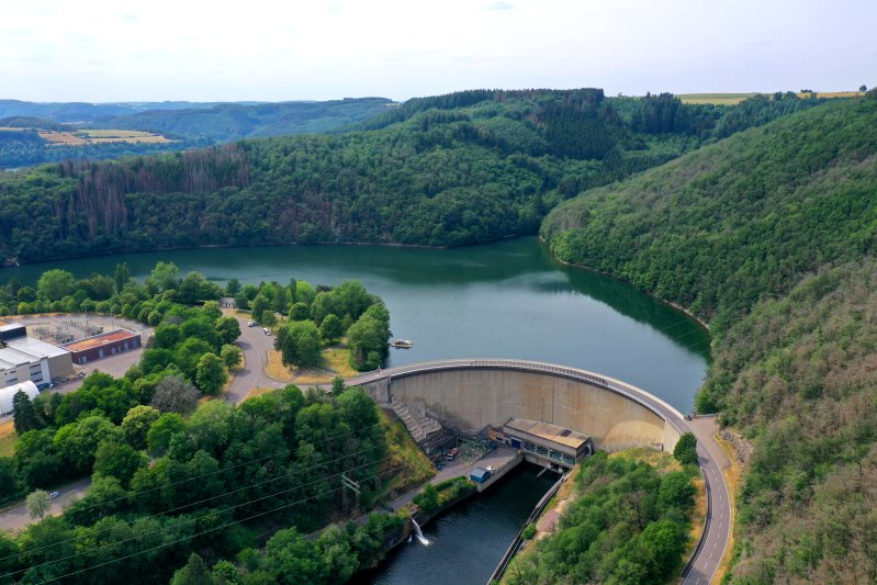 | Der Obersauer Stausee bei Esch-sur-Sûre. Luxemburg, Kanton Wiltz 17.06.2023; Flug Nr. mp078 |
