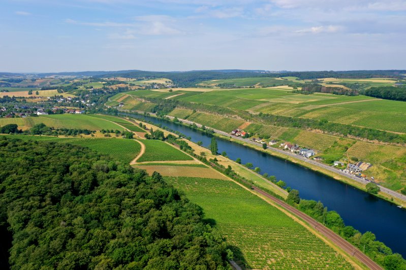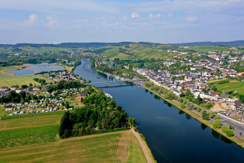 | Die Mosel zwischen Remich und Nennig. Luxemburg, Kanton Remisch / Deutschland, Saarland 18.06.2023; Flug Nr. mp080 |