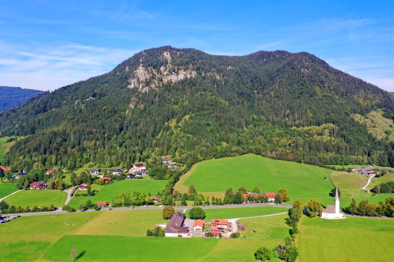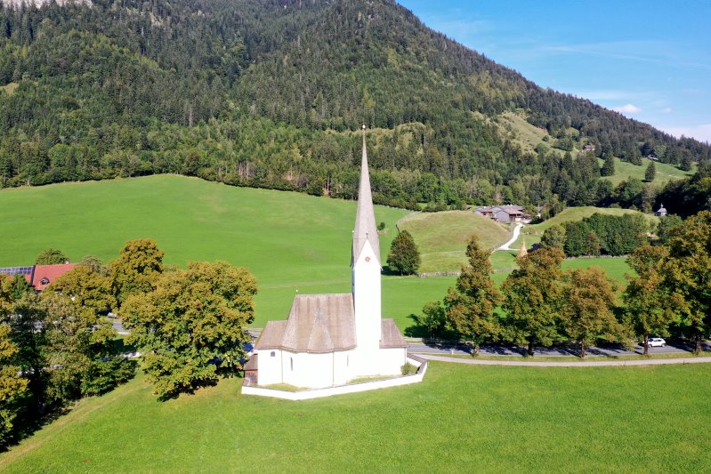| Die Kirche St. Leonhard in Fischhausen. Deutschland, Bayern 12.09.2023 Flug Nr. mp112 |
