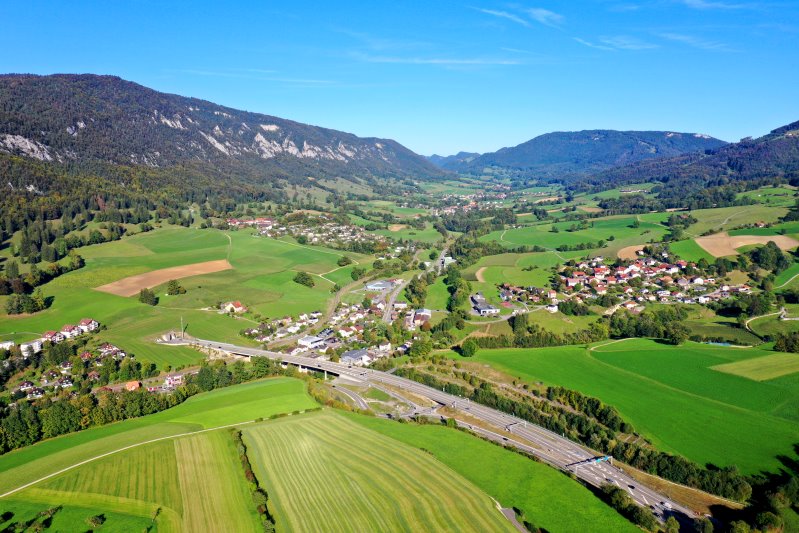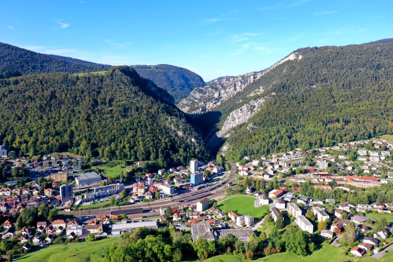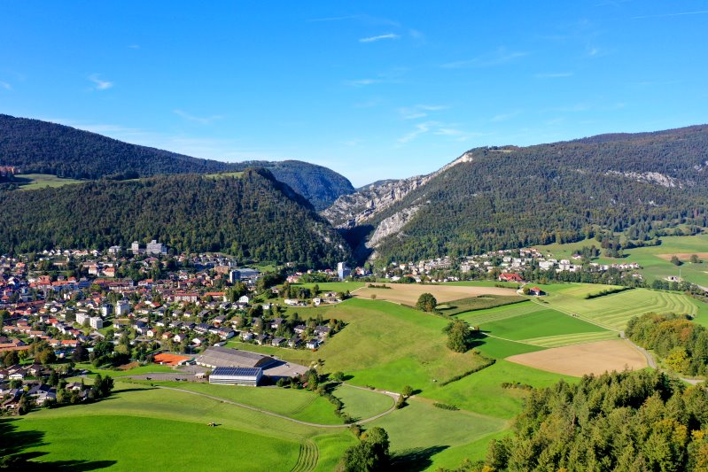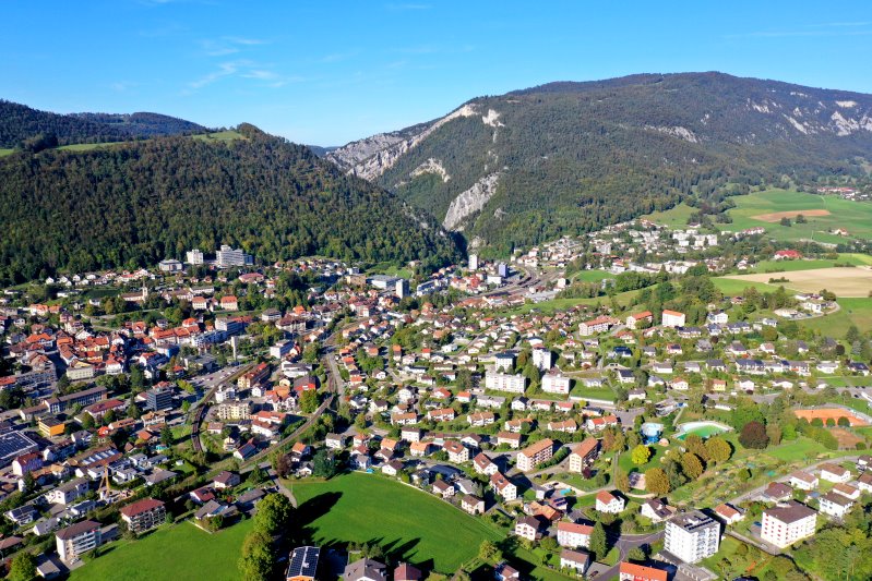 | Blick auf Moutier. Schweiz, Kanton Bern 25.09.2023 Flug Nr. mp113 |