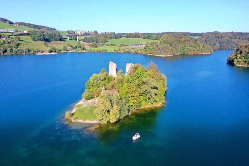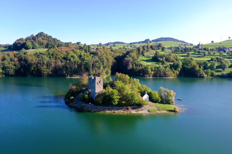 | Flug um die Ruine vom Château de Pont-en-Ogoz. Schweiz, Kanton Fribourg 07.10.2023 Flug Nr. mp119 |