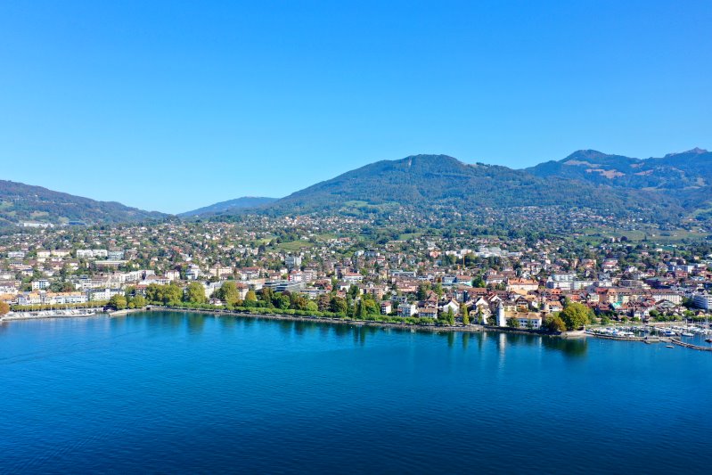 | Blick auf Vevey. Schweiz, Kanton Vaud 07.10.2023 Flug Nr. mp120 |