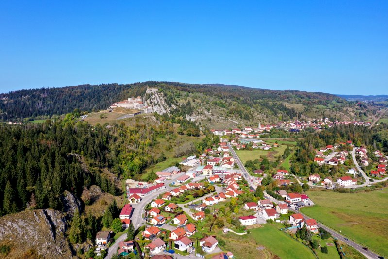 | Blick auf Cluse-et-Mijouxt. Frankreich, Département Doubs 07.10.2023 Flug Nr. mp122 |