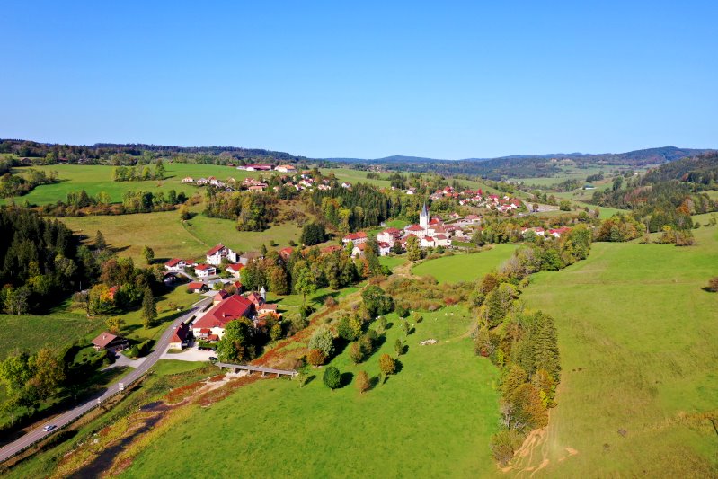 | Blick auf Ville-du-Pont. Frankreich, Département Doubs 07.10.2023 Flug Nr. mp123 |