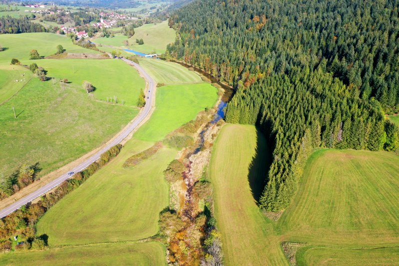 | Der Doubs bei Ville-du-Pont. Frankreich, Département Doubs 07.10.2023 Flug Nr. mp123 |