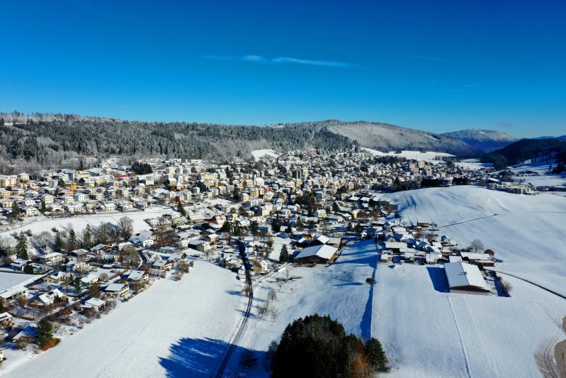 | Blick auf Tramelan. Schweiz, Kanton Bern 29.11.2023 Flug Nr. mp125 |