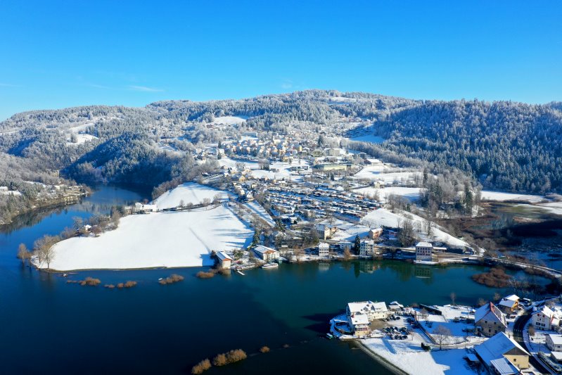 | Blick auf Les Brenets. Schweiz, Kanton Neuchâtel 03.12.2023 Flug Nr. mp131 |