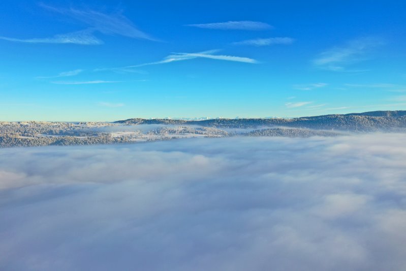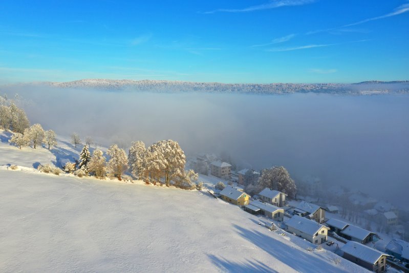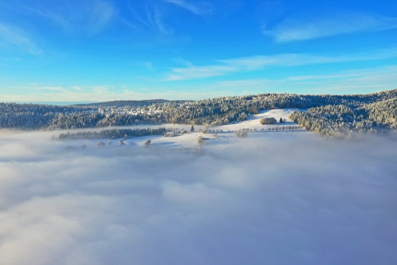 | Flug an der Nebelgrenze bei Les-Ponts-de-Martel. Schweiz, Kanton Neuchâtel 03.12.2023 Flug Nr. mp134 |