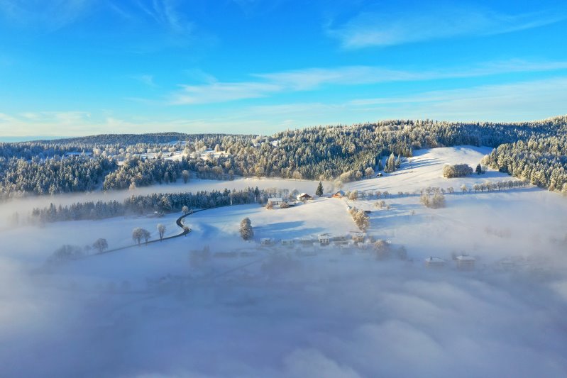 | Flug über das Vallée de la Brévine. Schweiz, Kanton Neuchâtel 03.12.2023 Flug Nr. mp133 |