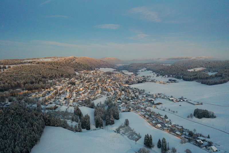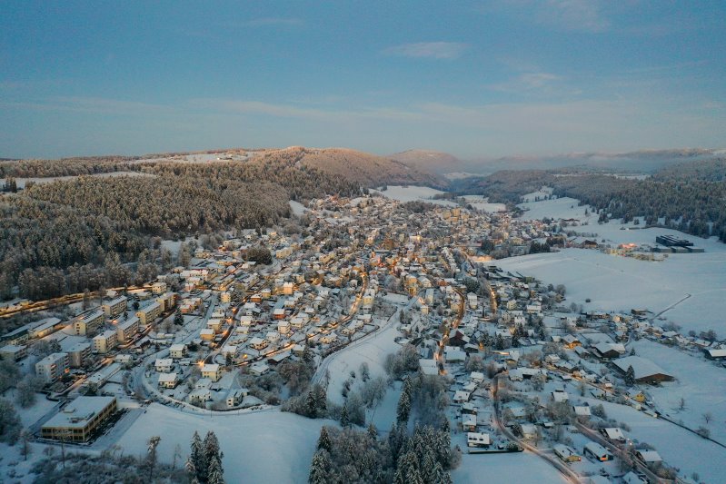 | Blick auf Tramelan. Schweiz, Kanton Bern 03.12.2023 Flug Nr. mp135 |