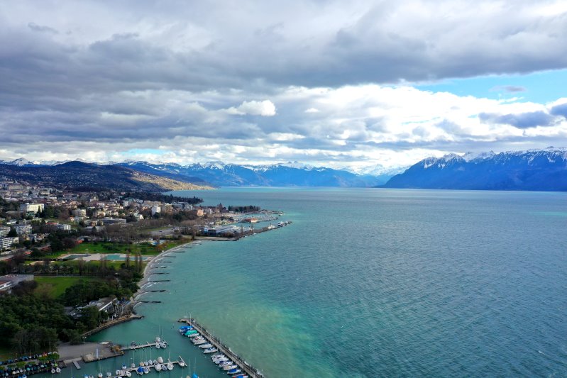 | Blick auf den Genfersee bei Lausanne. Schweiz, Kanton Waadt 03.01.2024 Flug Nr. mp136 |