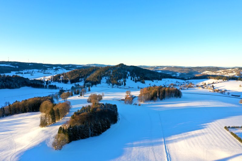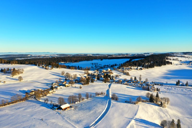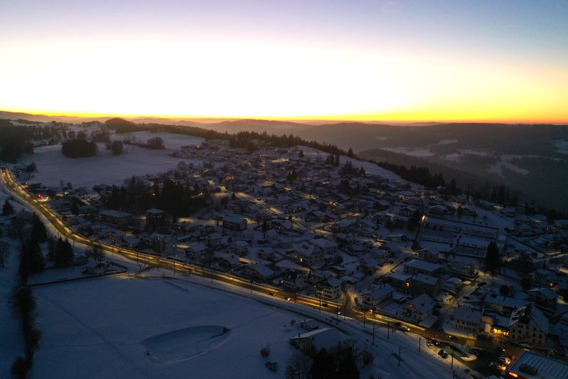 | Blick auf Le Noirmont. Schweiz, Kanton Jura 12.01.2024 Flug Nr. mp144 |
