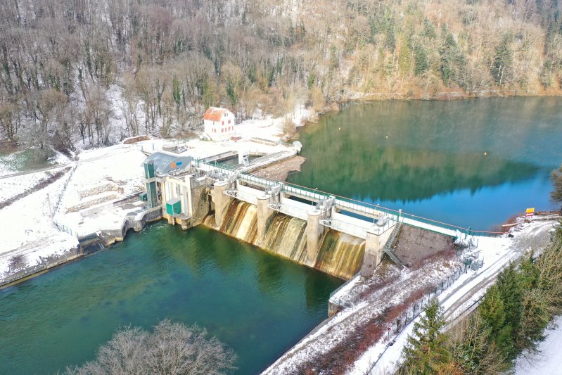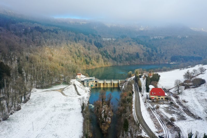 | Barrage EDF bei Soulce-Cernay. Frankreich, Département Doubs 13.01.2024 Flug Nr. mp147 |