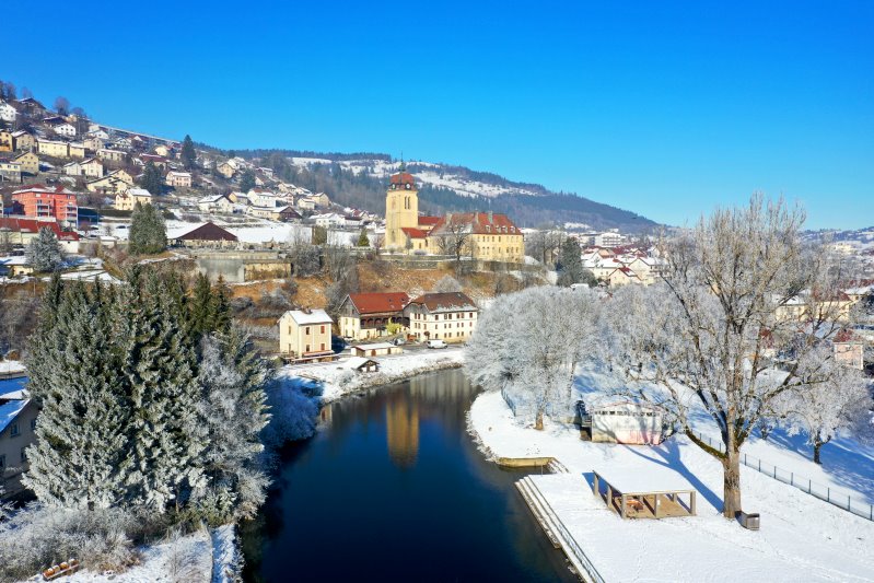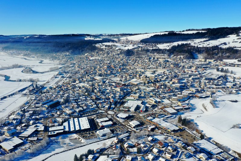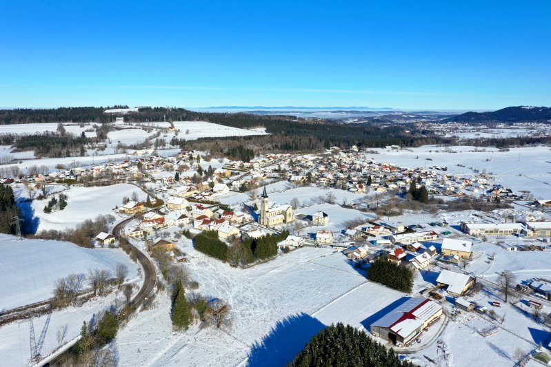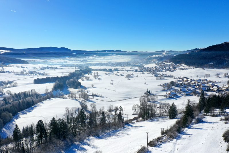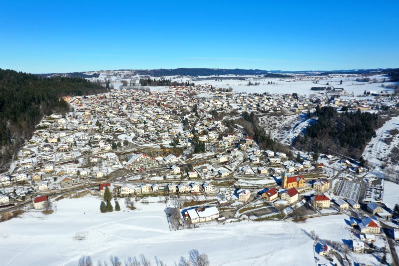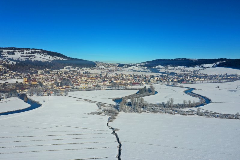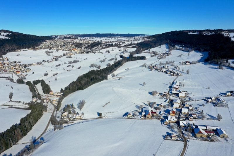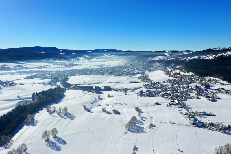 | Blick auf Morteau. Frankreich, Département Doubs 13.01.2024 Flug Nr. mp149 |
