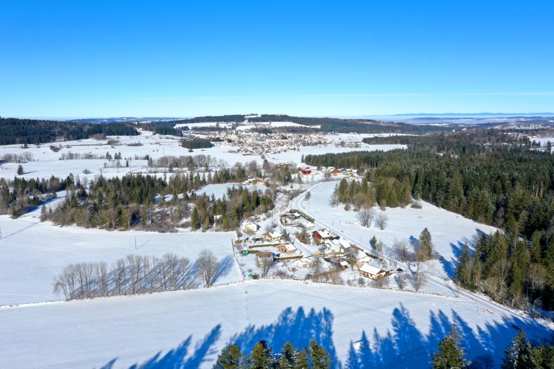 | Blick auf Le Fins. Frankreich, Département Doubs 13.01.2024 Flug Nr. mp149 |