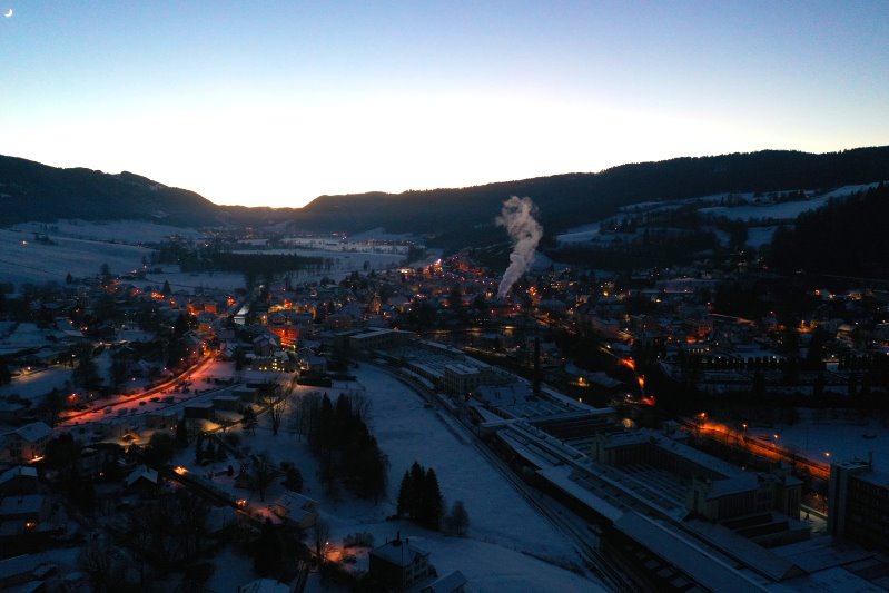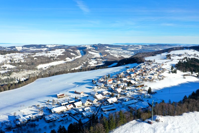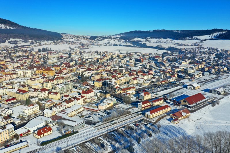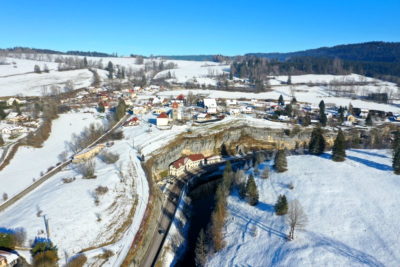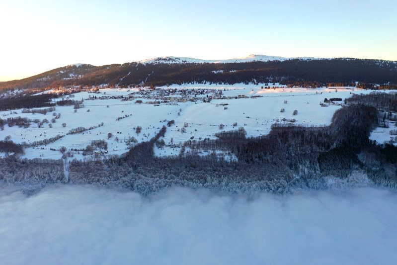 | Blick auf Morteau. Frankreich, Département Doubs 13.01.2024 Flug Nr. mp151 |