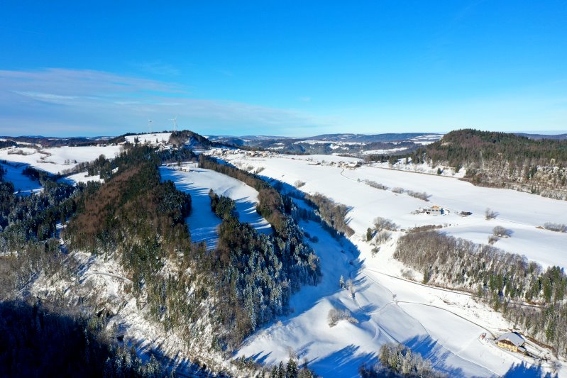| Flug bei Saint-Ursanne. Schweiz, Kanton Jura 14.01.2024 Flug Nr. mp156 |