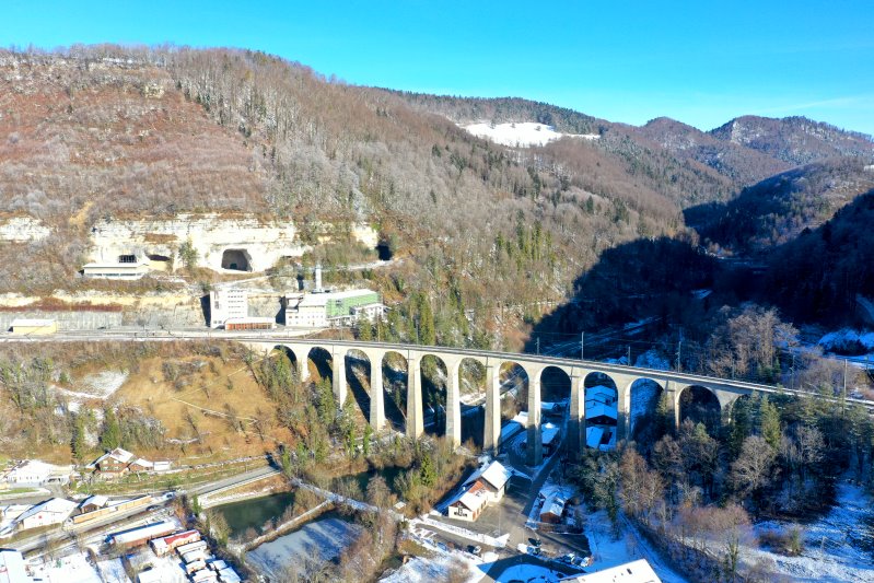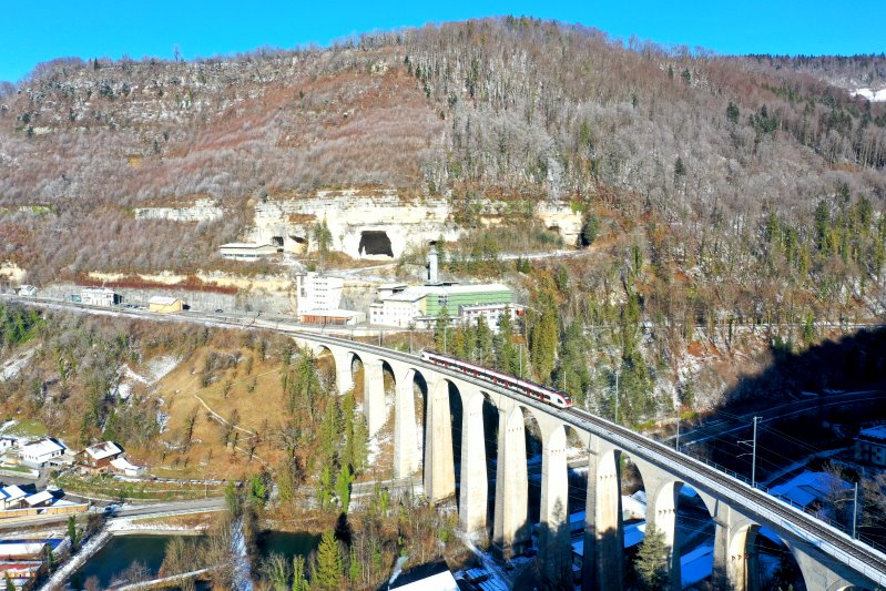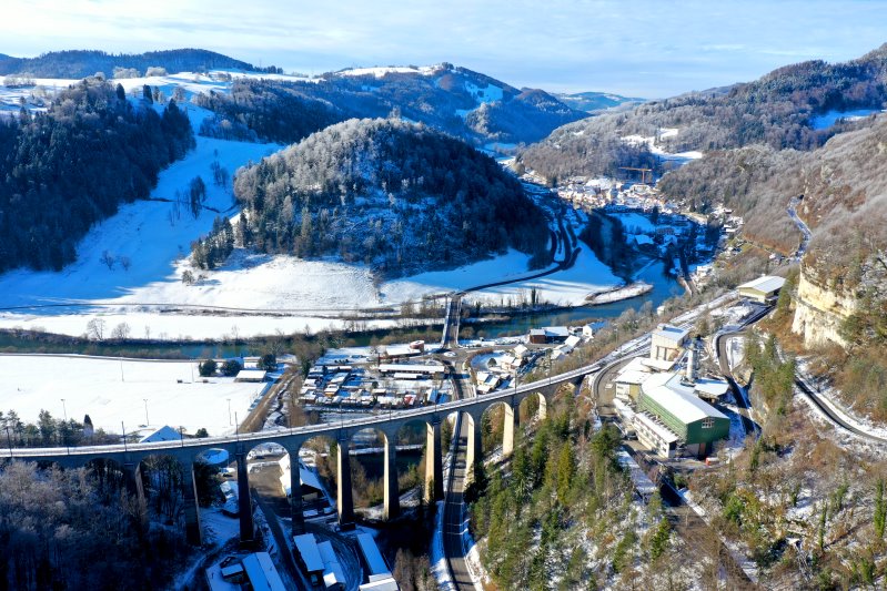 | Der Viadukt Combe Meran bei Saint-Ursanne. Schweiz, Kanton Jura 14.01.2024 Flug Nr. mp156 |