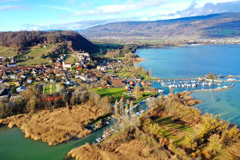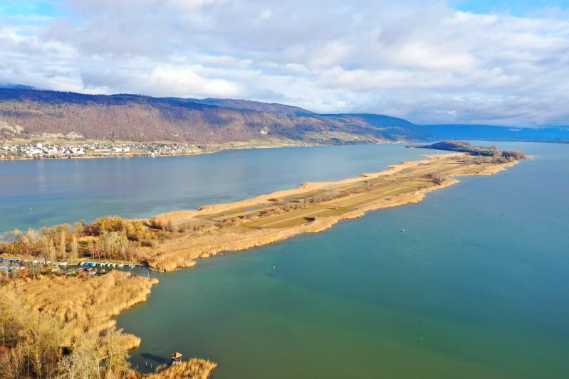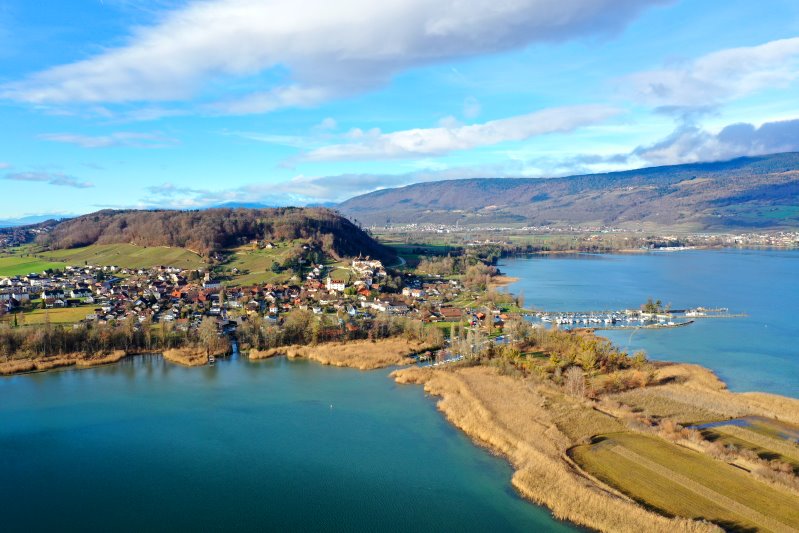 | Der Bielersee bei Erlach. Schweiz, Kanton Bern 25.01.2024 Flug Nr. mp157 |