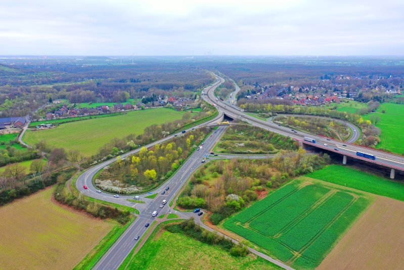 | Die Autobahnauffahrt Duisburg Baerl. Deutschland, Nordrhein-Westfalen 21.03.2024 Flug Nr. mp175 |