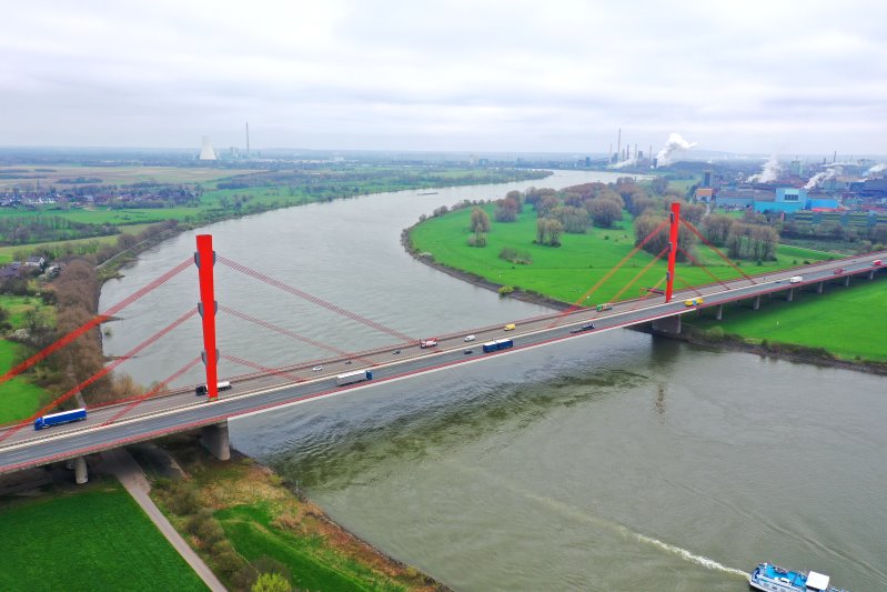 | Die Rheinbrücke der A 42 in Duisburg. Deutschland, Nordrhein-Westfalen 21.03.2024 Flug Nr. mp175 |