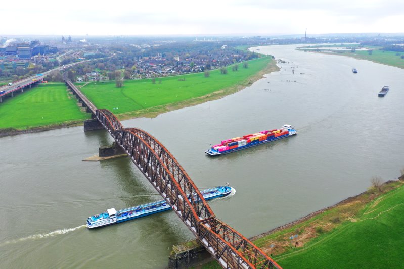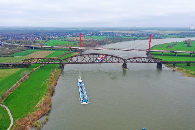 | Die Haus-Knipp-Eisenbhanbrücke in Duisburg. Deutschland, Nordrhein-Westfalen 21.03.2024 Flug Nr. mp175 |