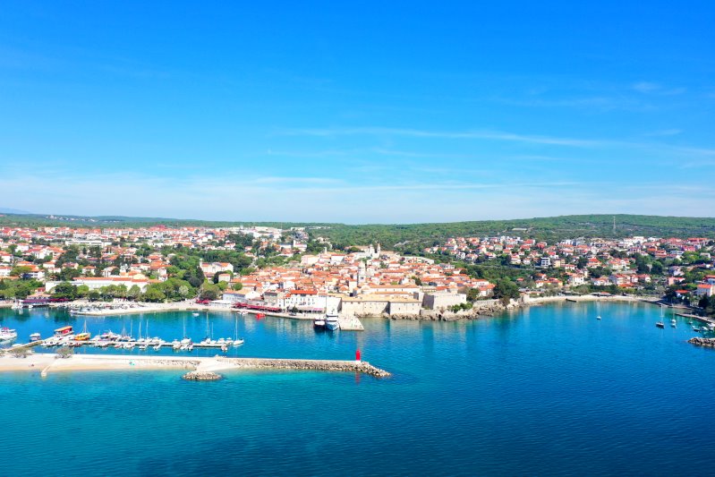 | Blick auf Krk. Kroatien, Gespanschaft Primorje-Gorski kotar 14.04.2024 Flug Nr. mp197 |