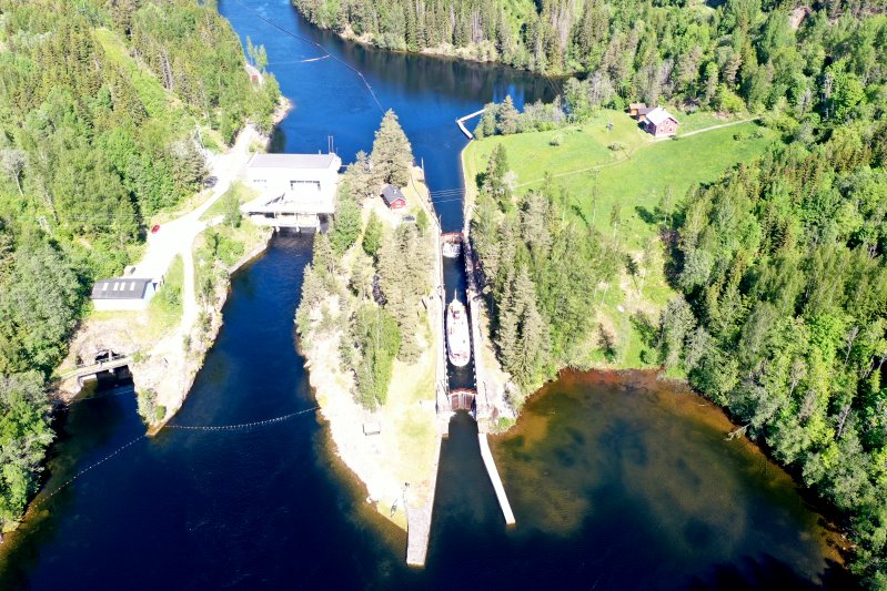 | Die Eidsfoss-Schleuse vom Telemarkkanal. Norwegen, Telemark 22.05.2024 Flug Nr. mp238 |