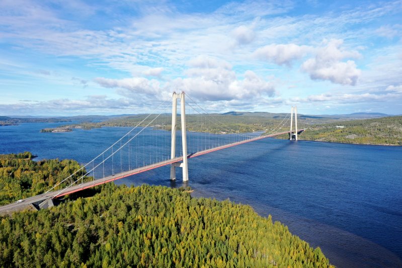 | Der Ångermanälven mit der Högakustenbron. Schweden, Ångermanland 27.09.2024 Flug Nr. mp290 |