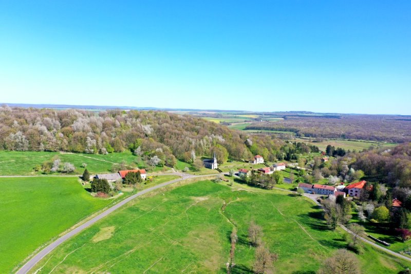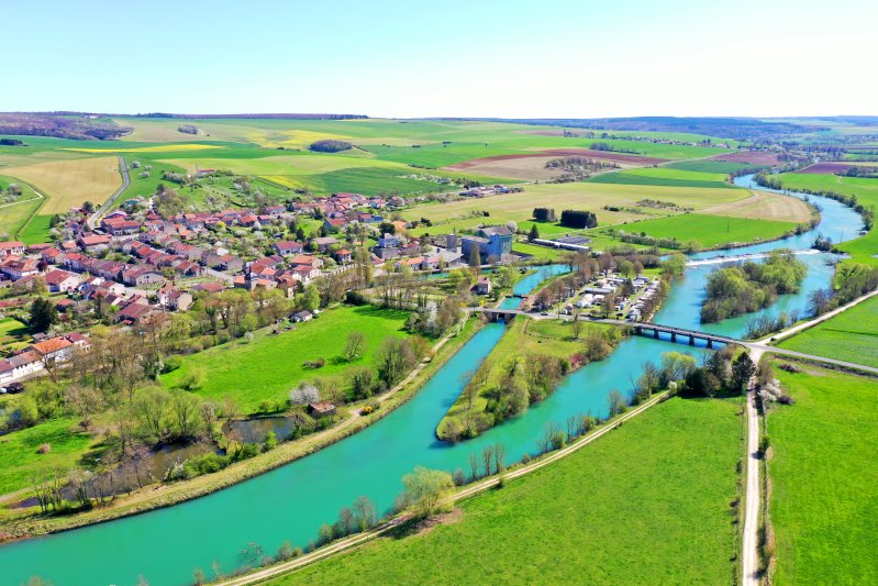 | Blick auf Dur-sur-Meuse im Val-de-Meuse. Frankreich, Département Meuse 06.04.2025 Flug Nr. mp342 |