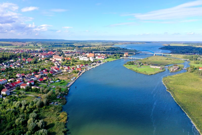 | Blick über die Dziwna nach Wollin. Polen, Województwo zachodniopomorskie 11.09.2025 Flug Nr. mp386 |