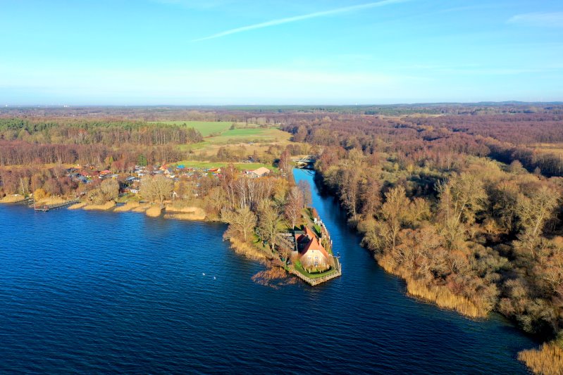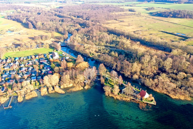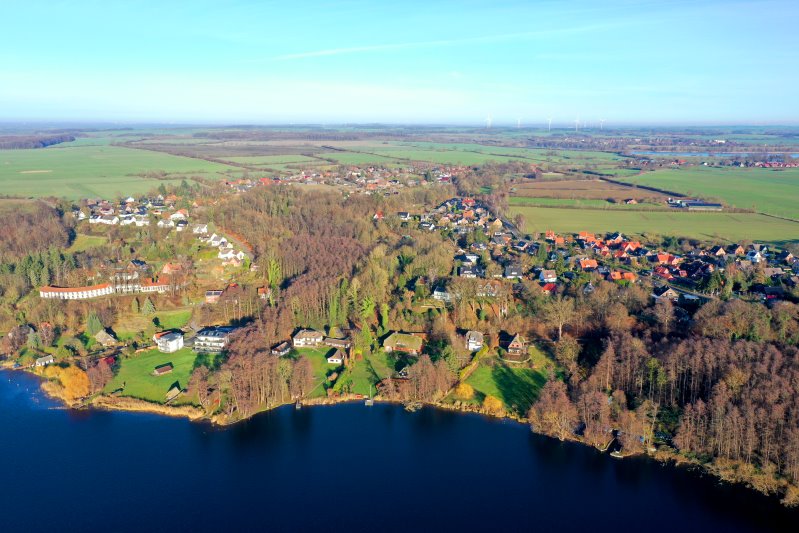 | Blick auf Rothenhusen mit der Wakenitz. Deutschland, Schleswig-Holstein / Mecklenburg-Vorpommern 16.12.2025 Flug Nr. mp410 |